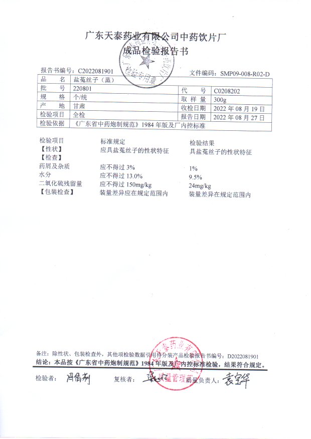 [盐菟丝子(蒸)]盐菟丝子(蒸)(个/统)