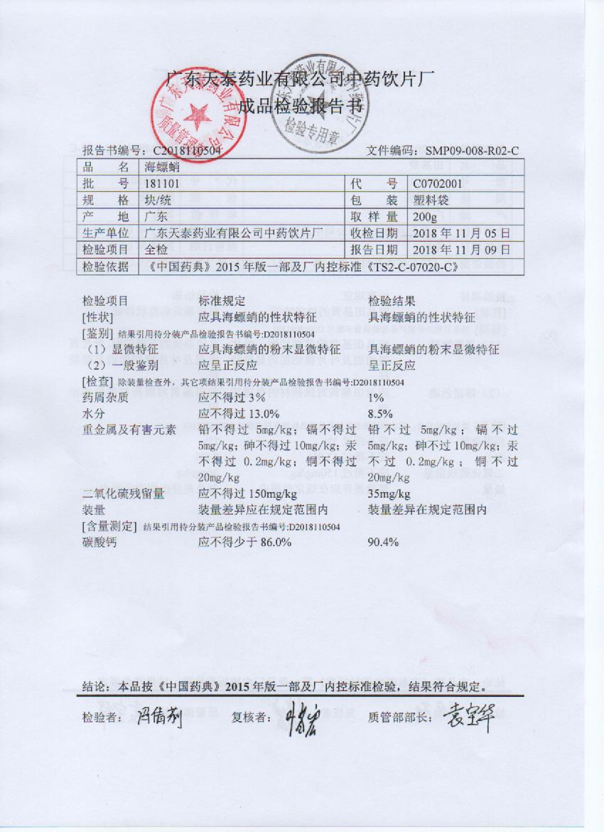 药检报告