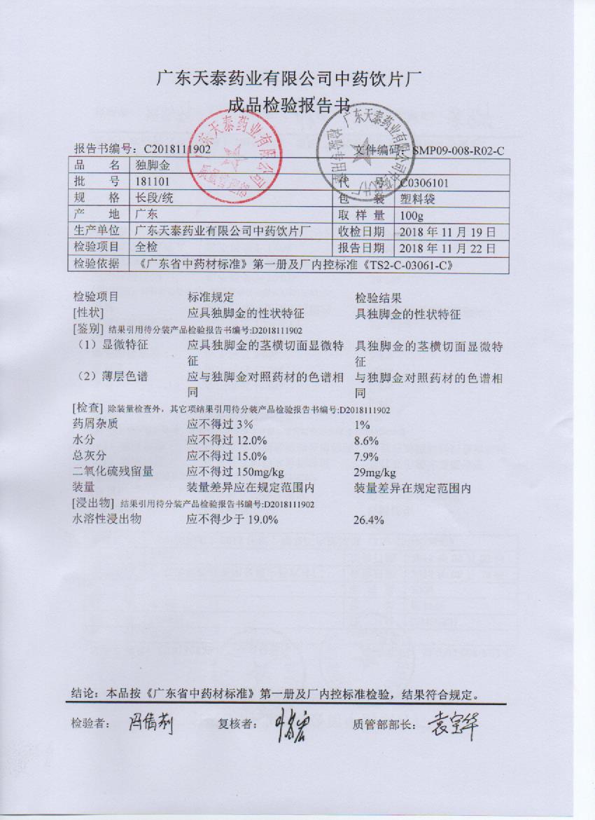 药检报告