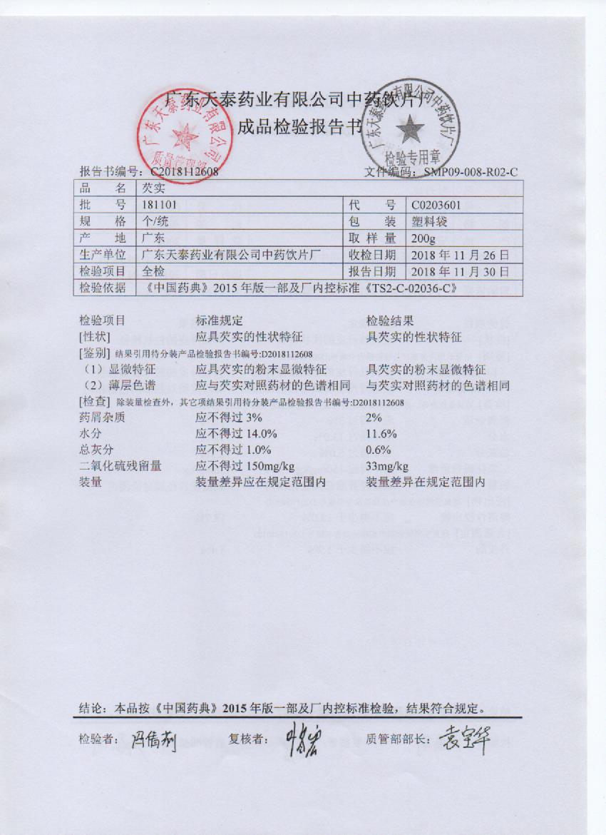 药检报告
