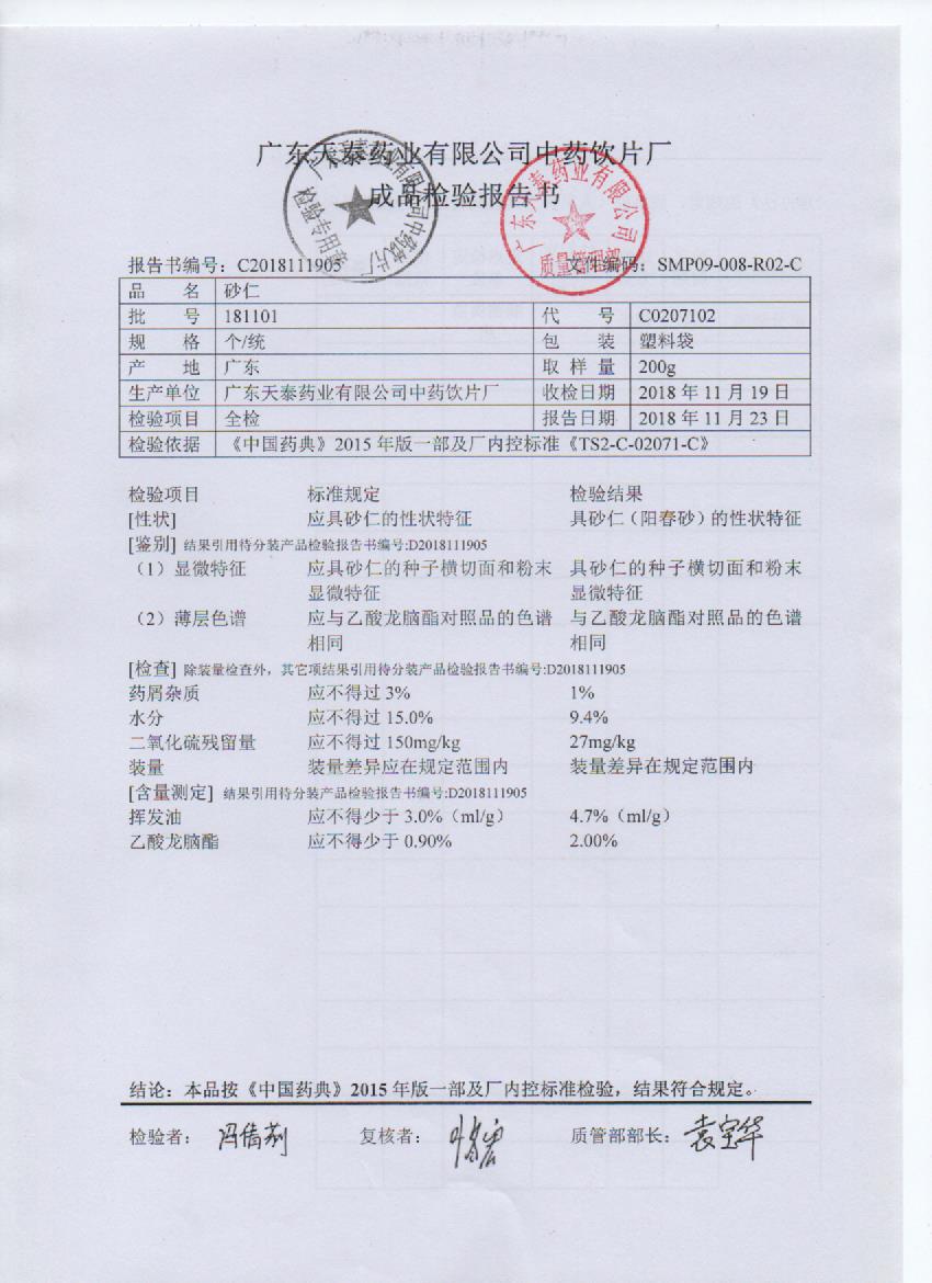 药检报告
