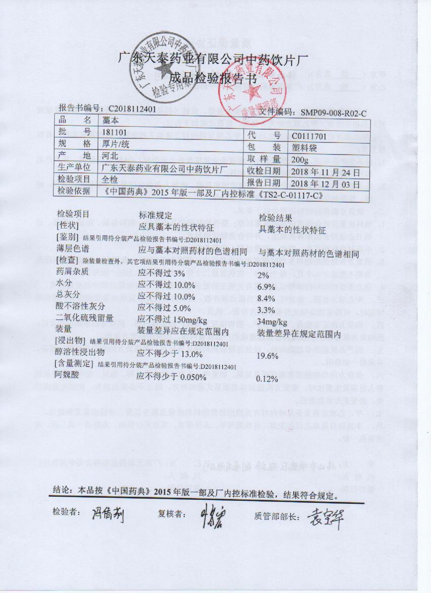 药检报告