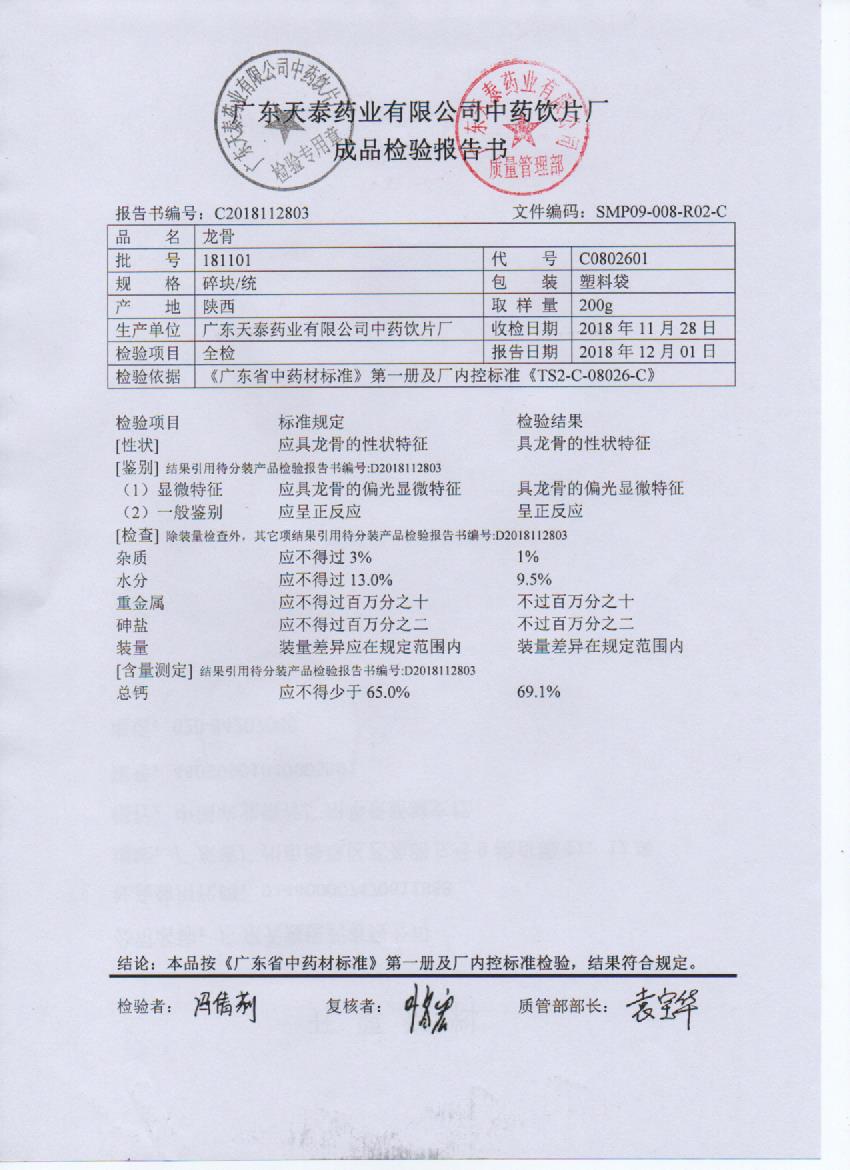 药检报告