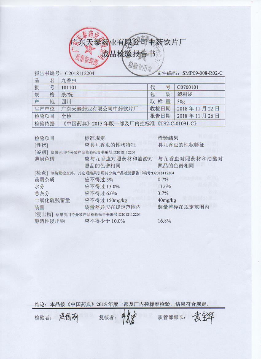 药检报告