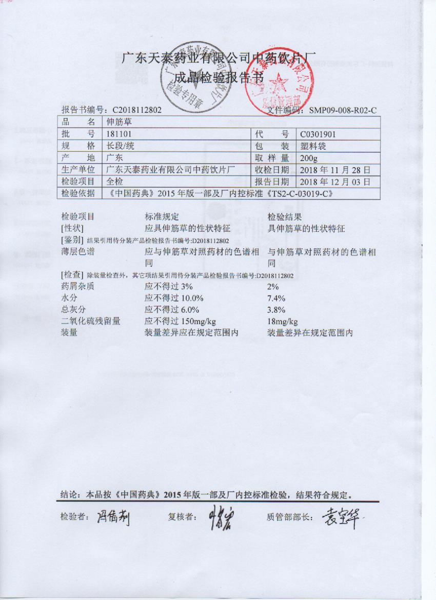 药检报告