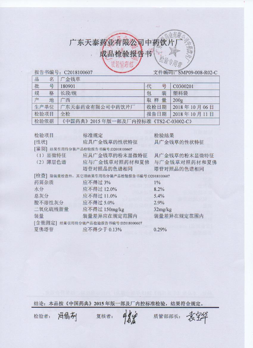 药检报告