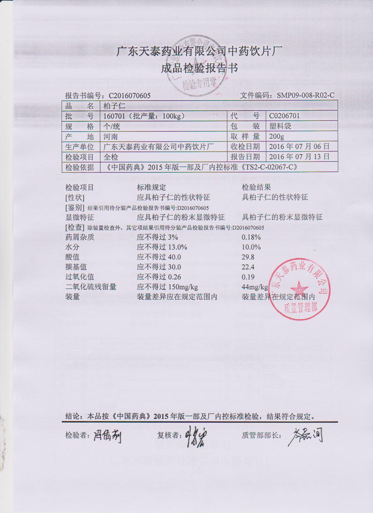 药检报告