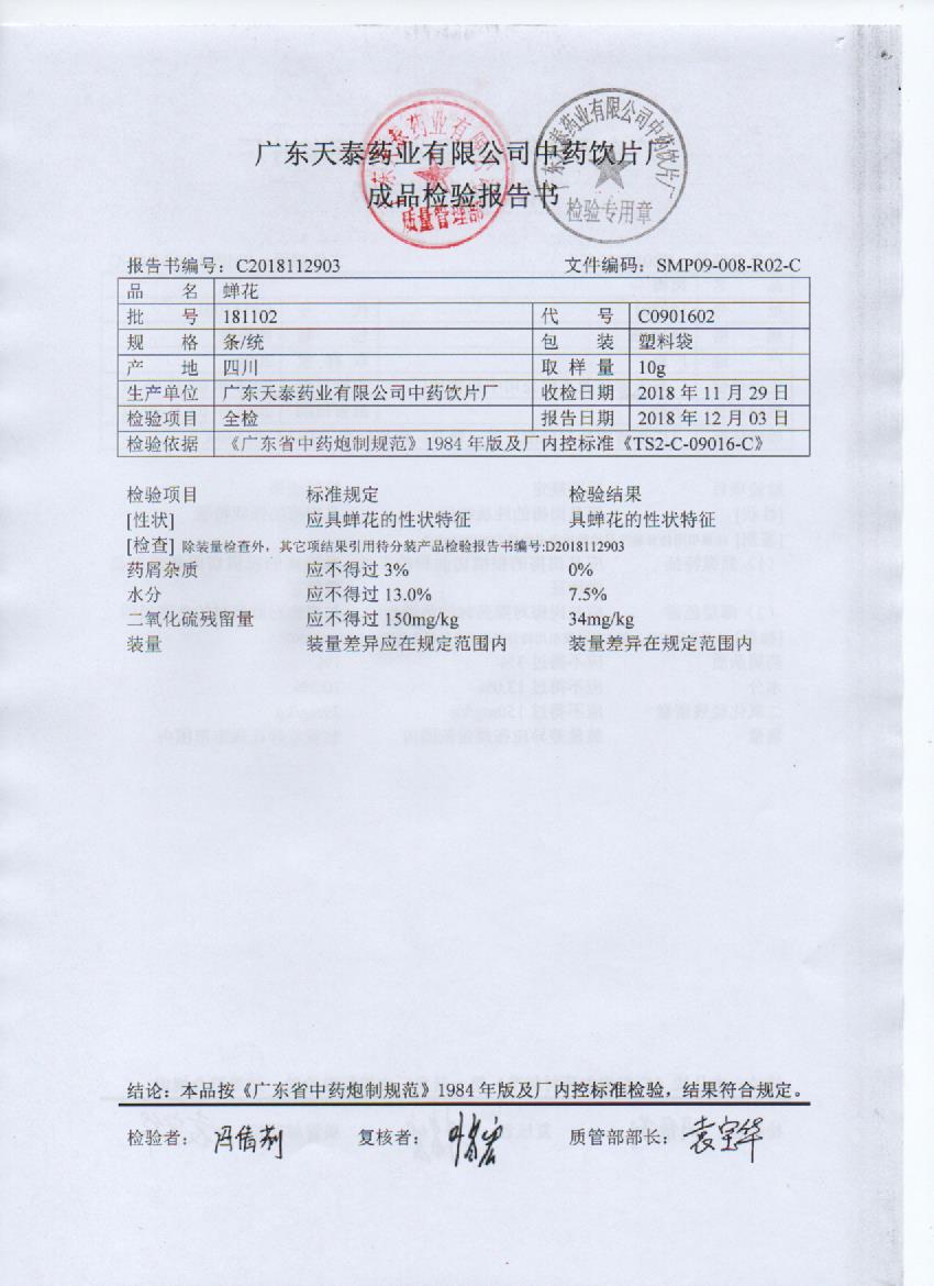 药检报告
