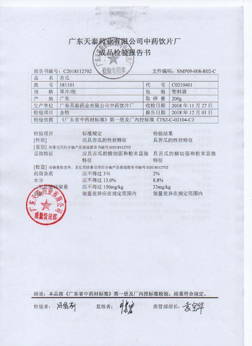 药检报告