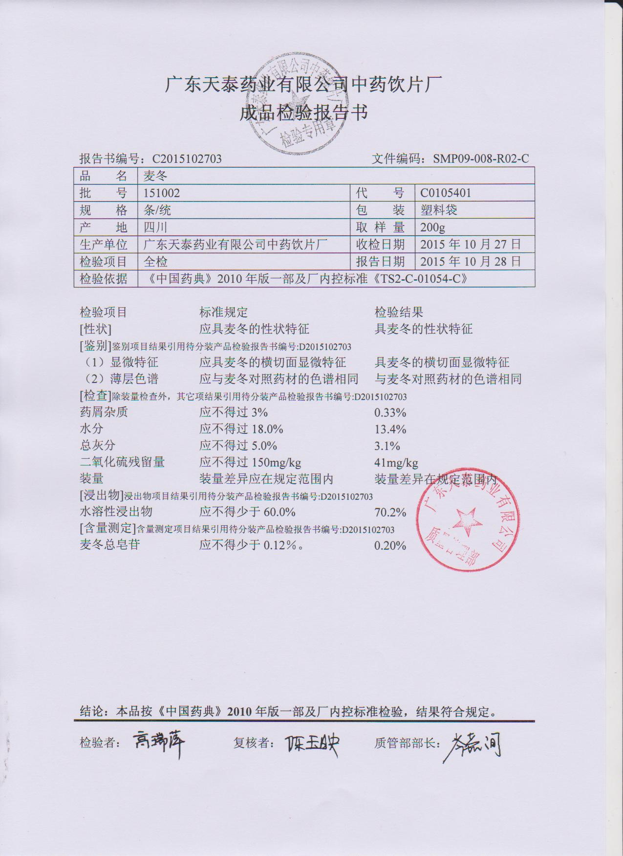 药检报告
