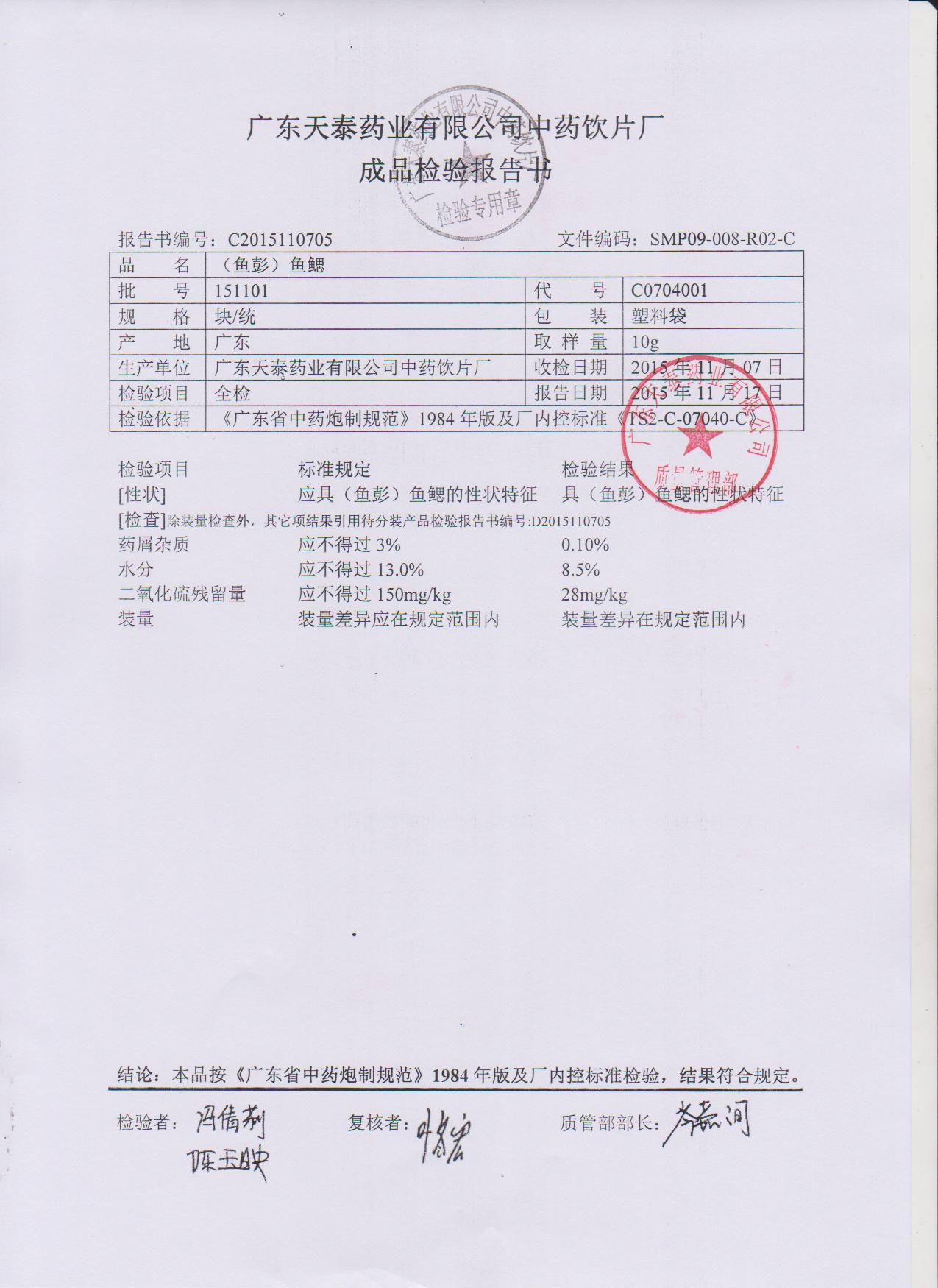 药检报告