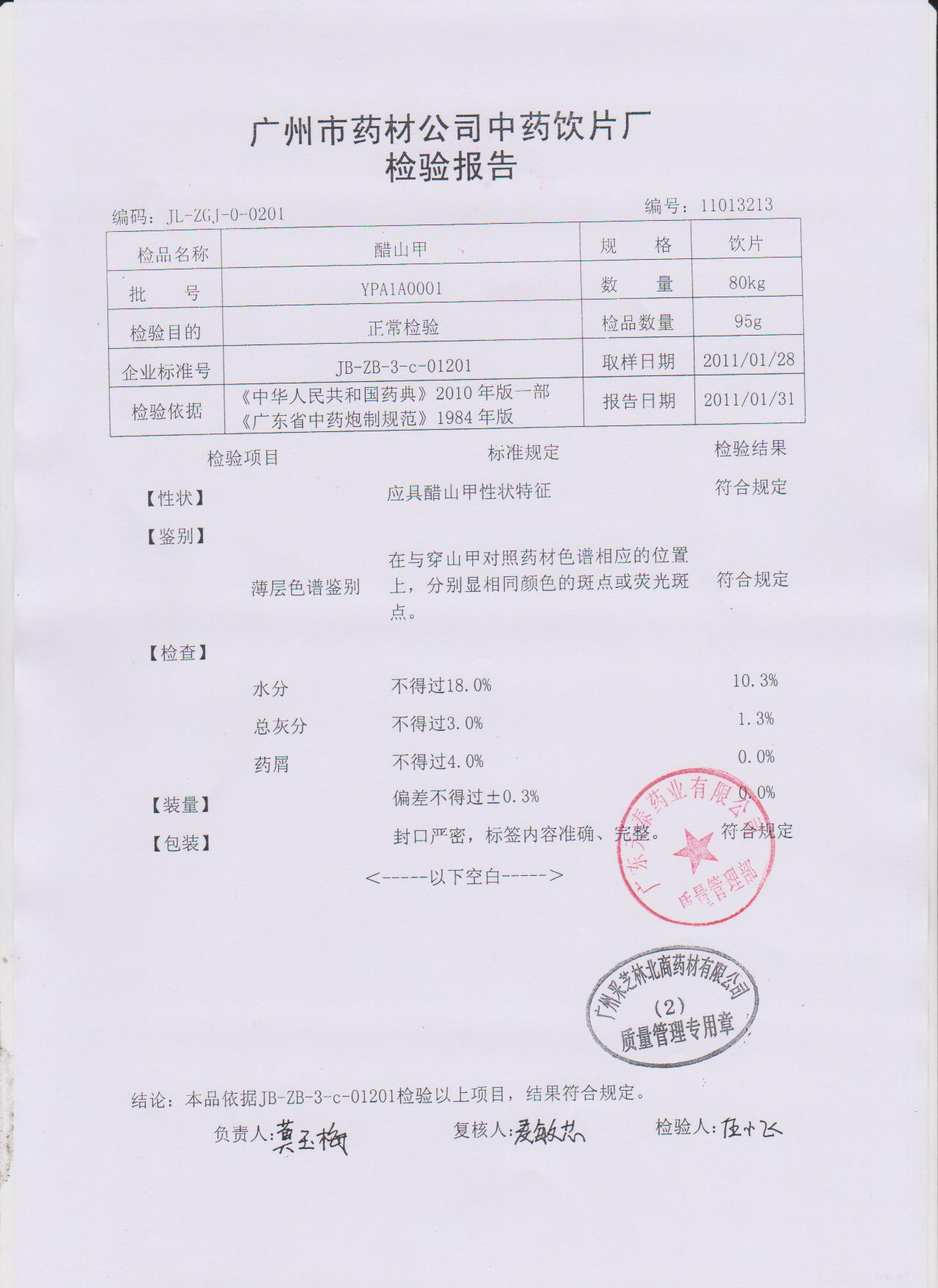药检报告