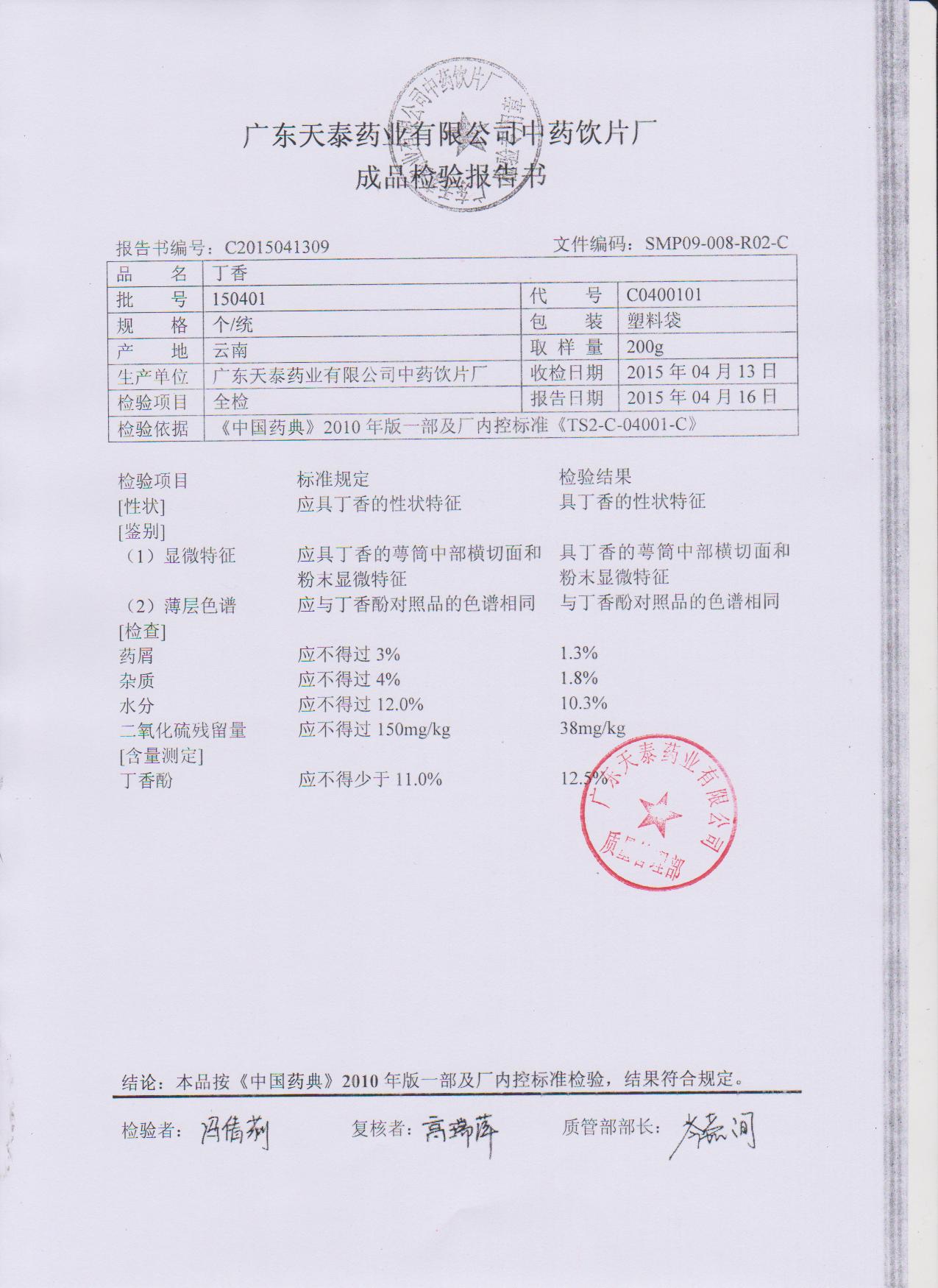 药检报告