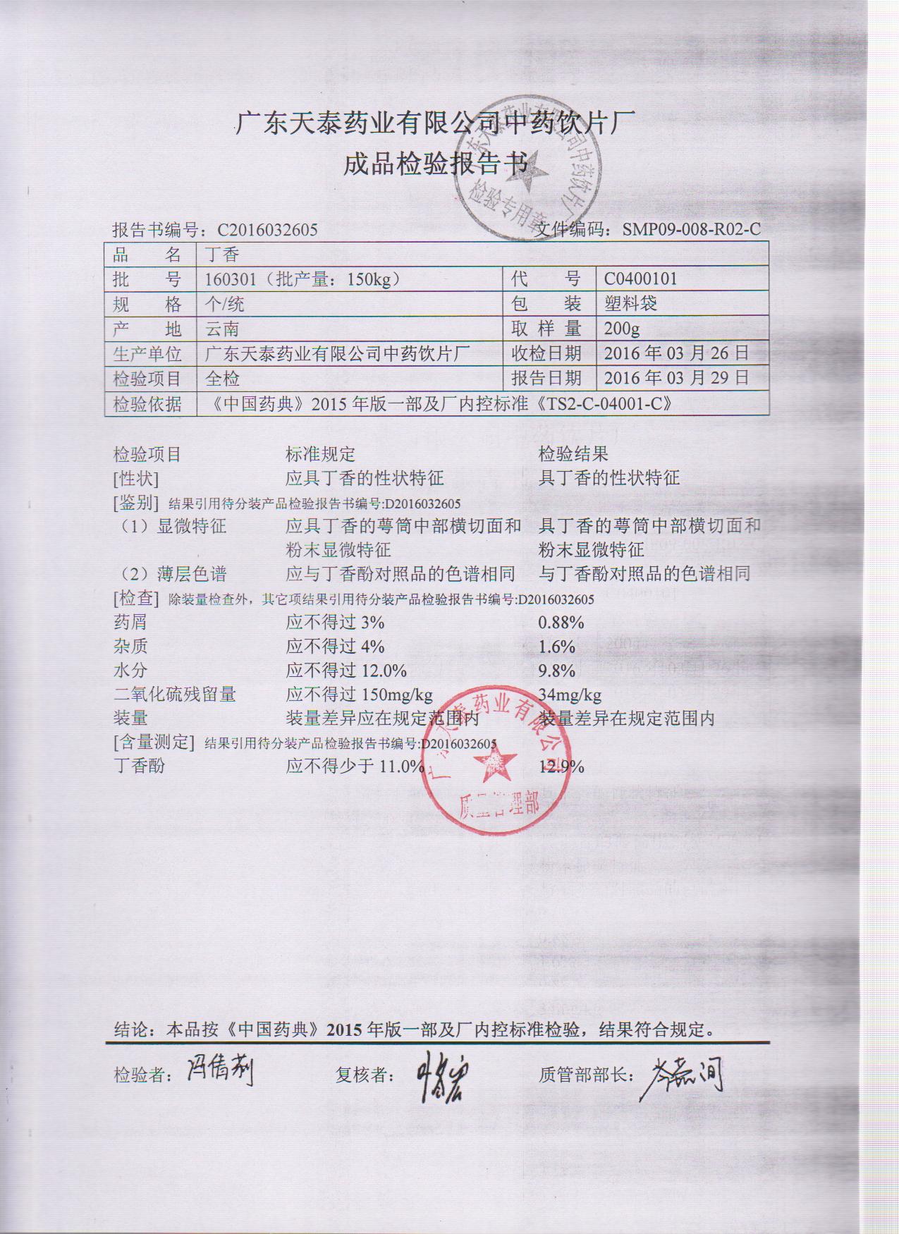 药检报告