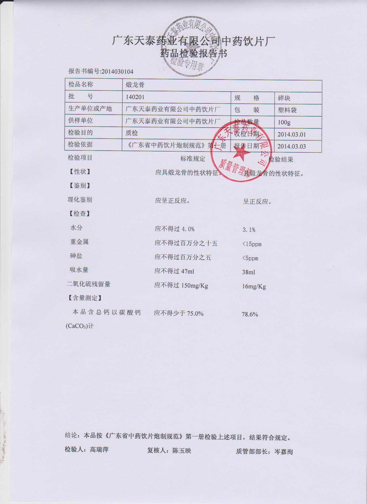 药检报告