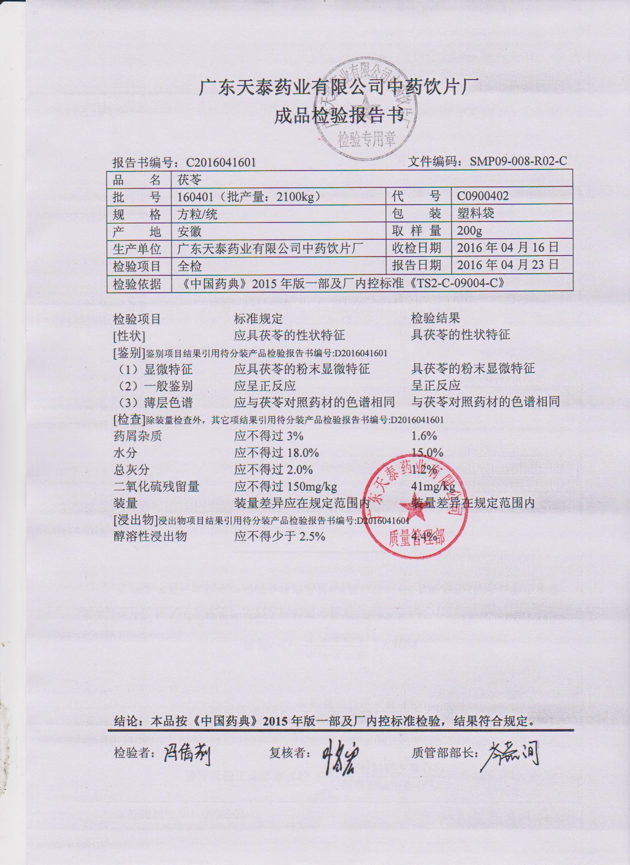 药检报告