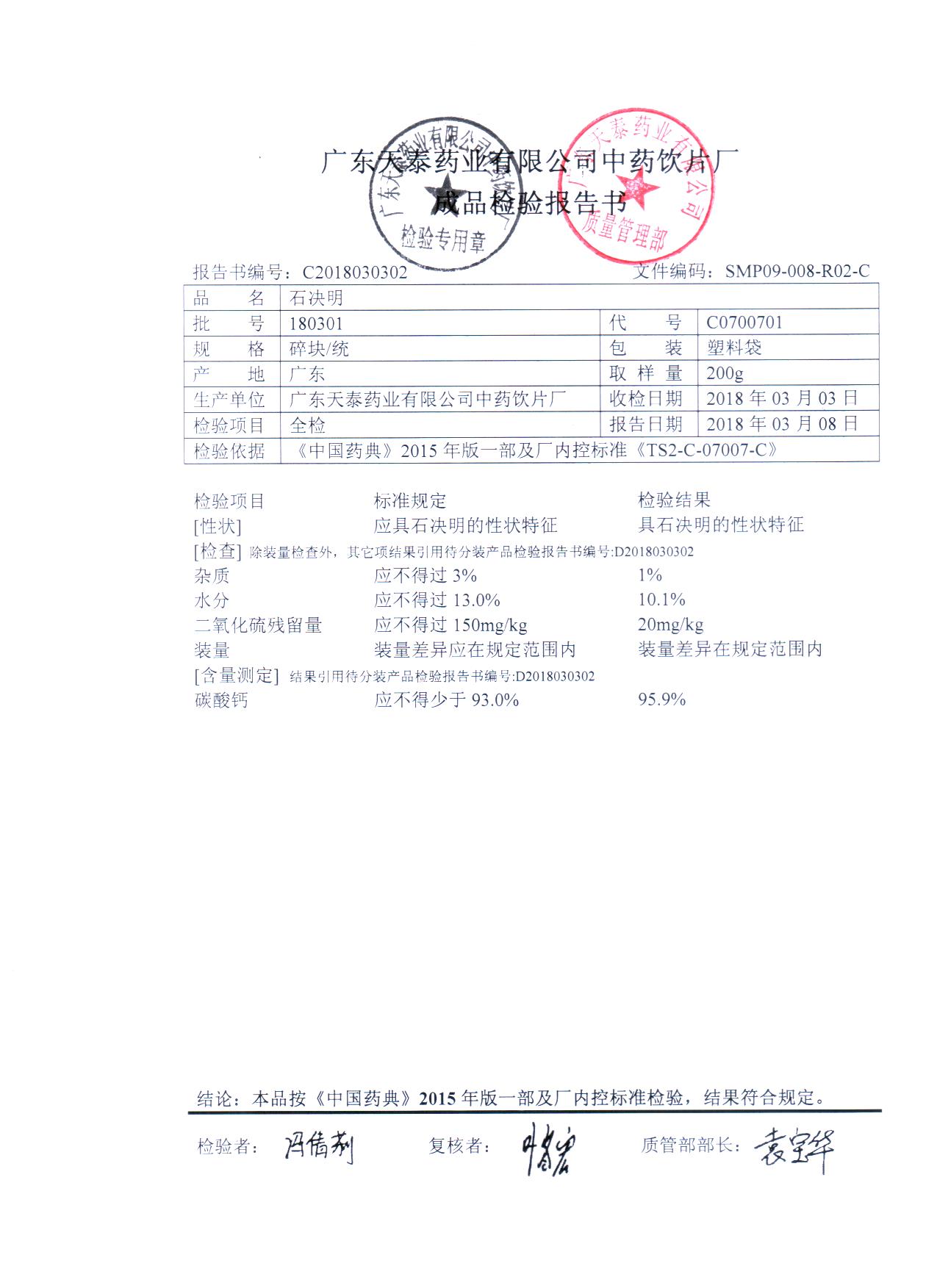 药检报告