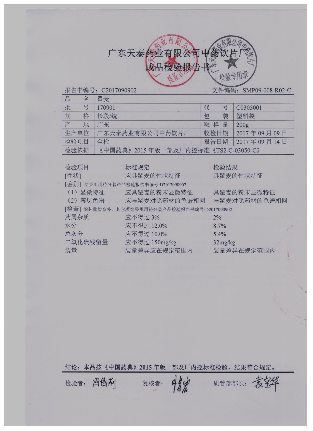 药检报告