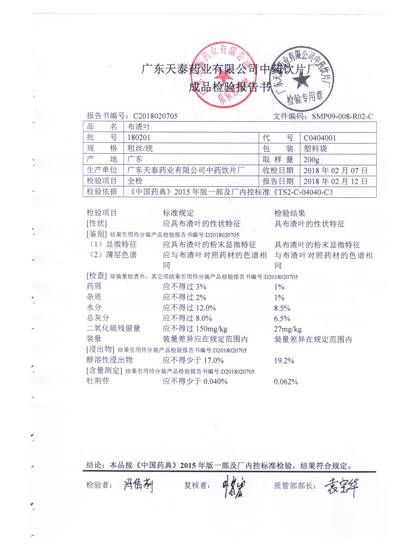药检报告