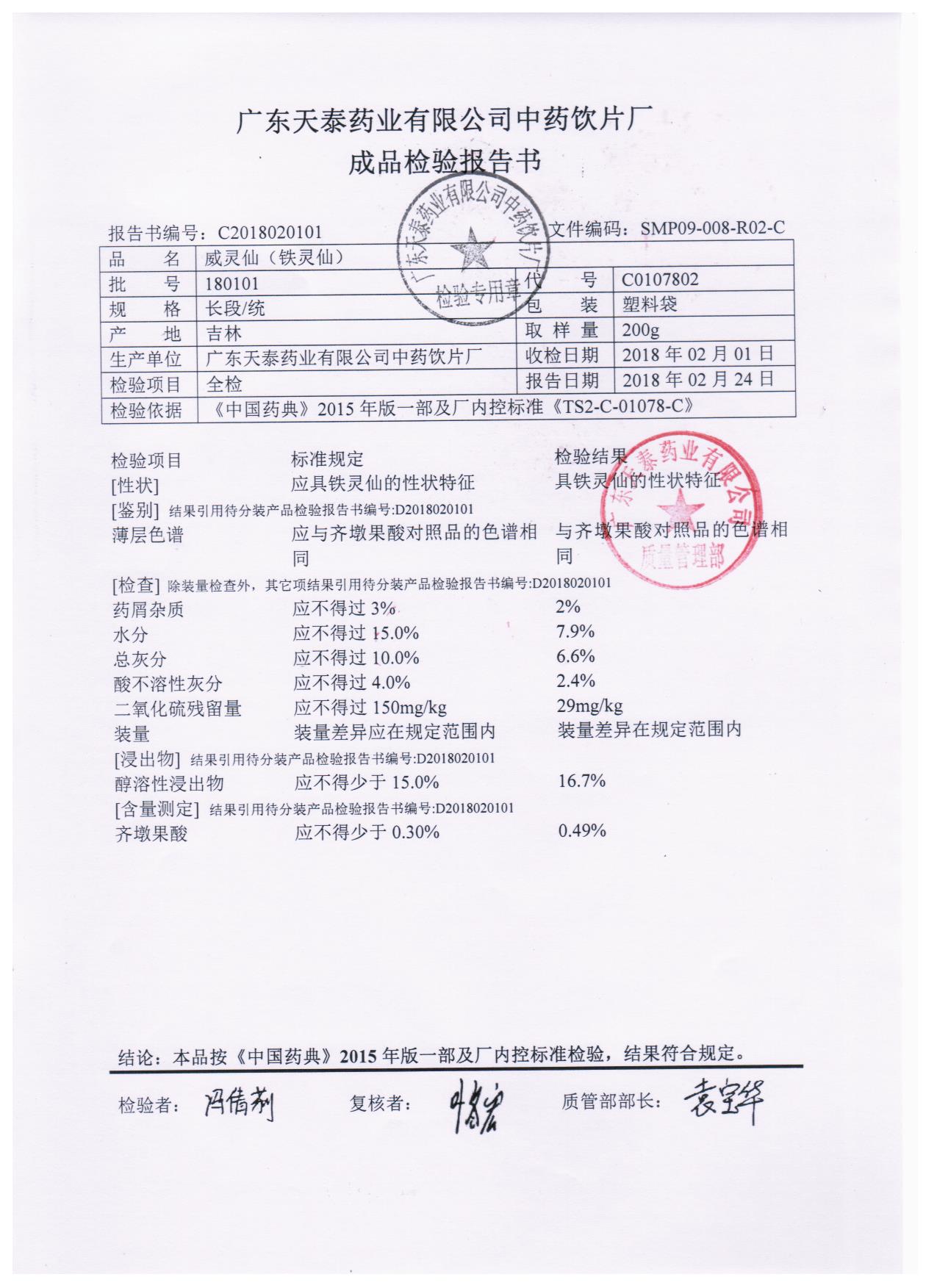 [威灵仙(铁灵仙)]威灵仙(铁灵仙)(长段 /统)
