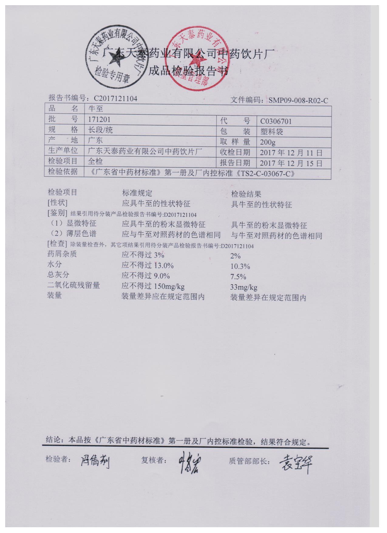 药检报告
