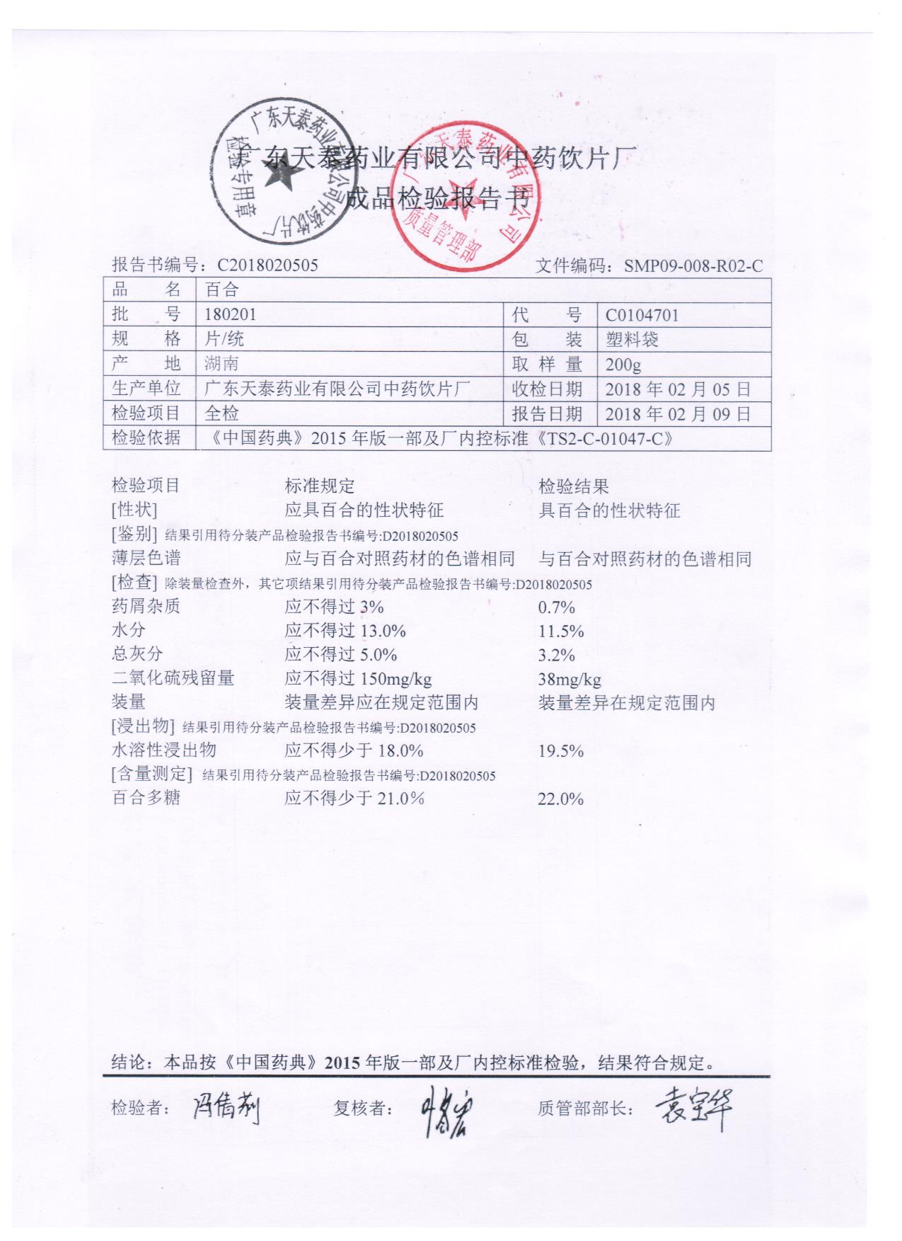 药检报告