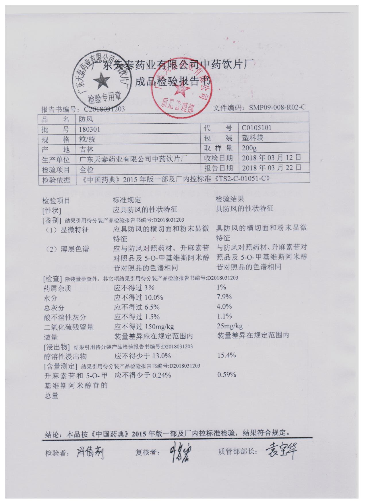 药检报告