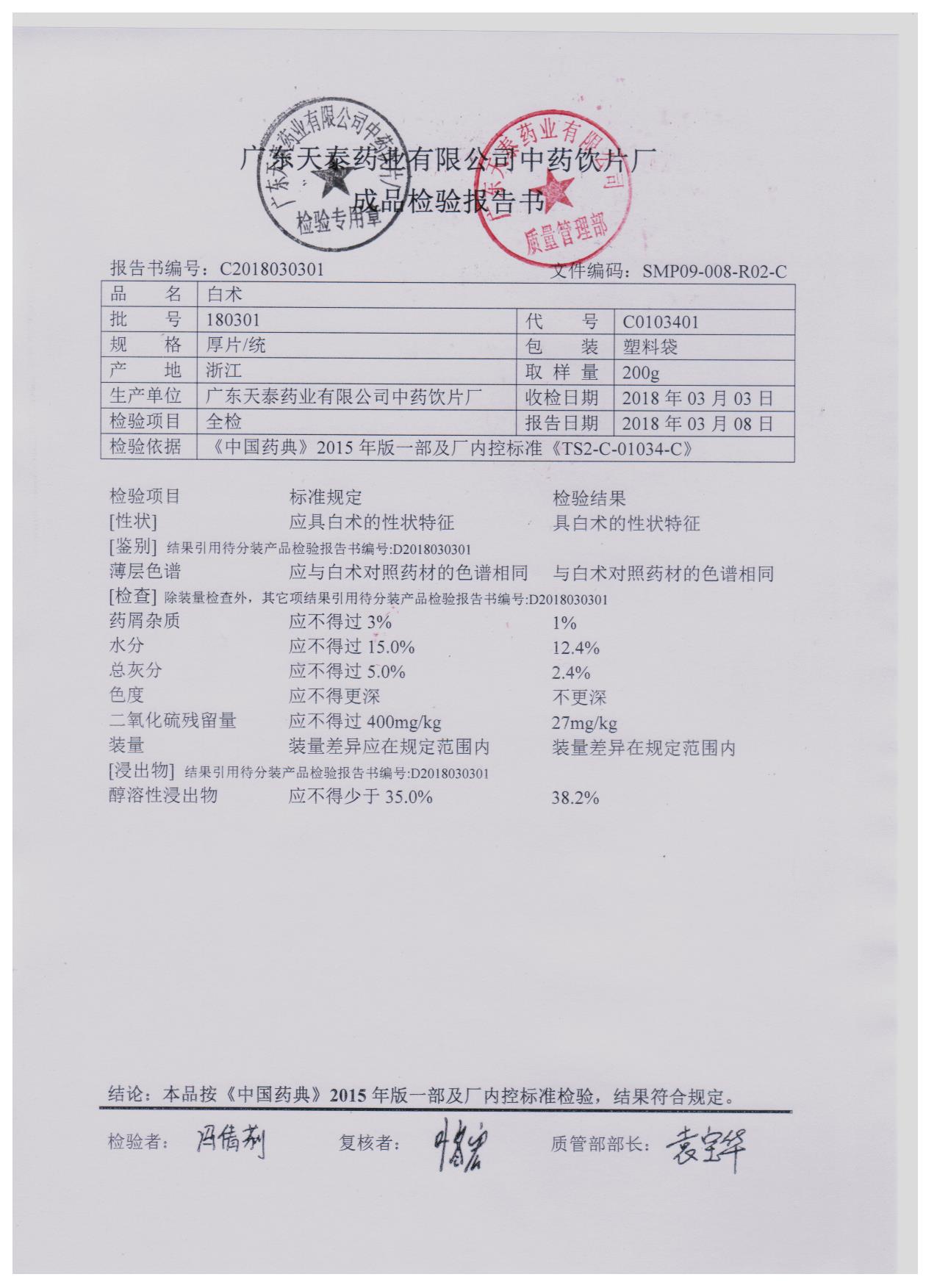 药检报告