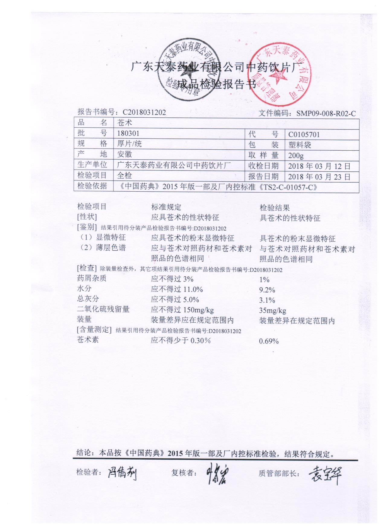 药检报告