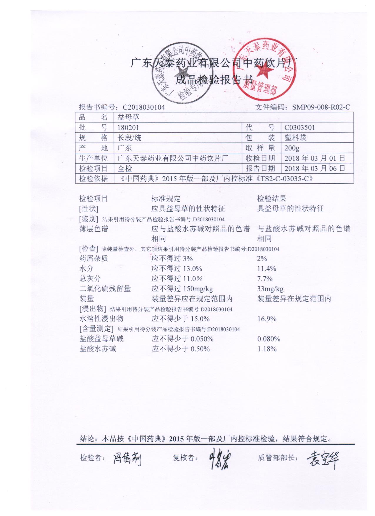药检报告