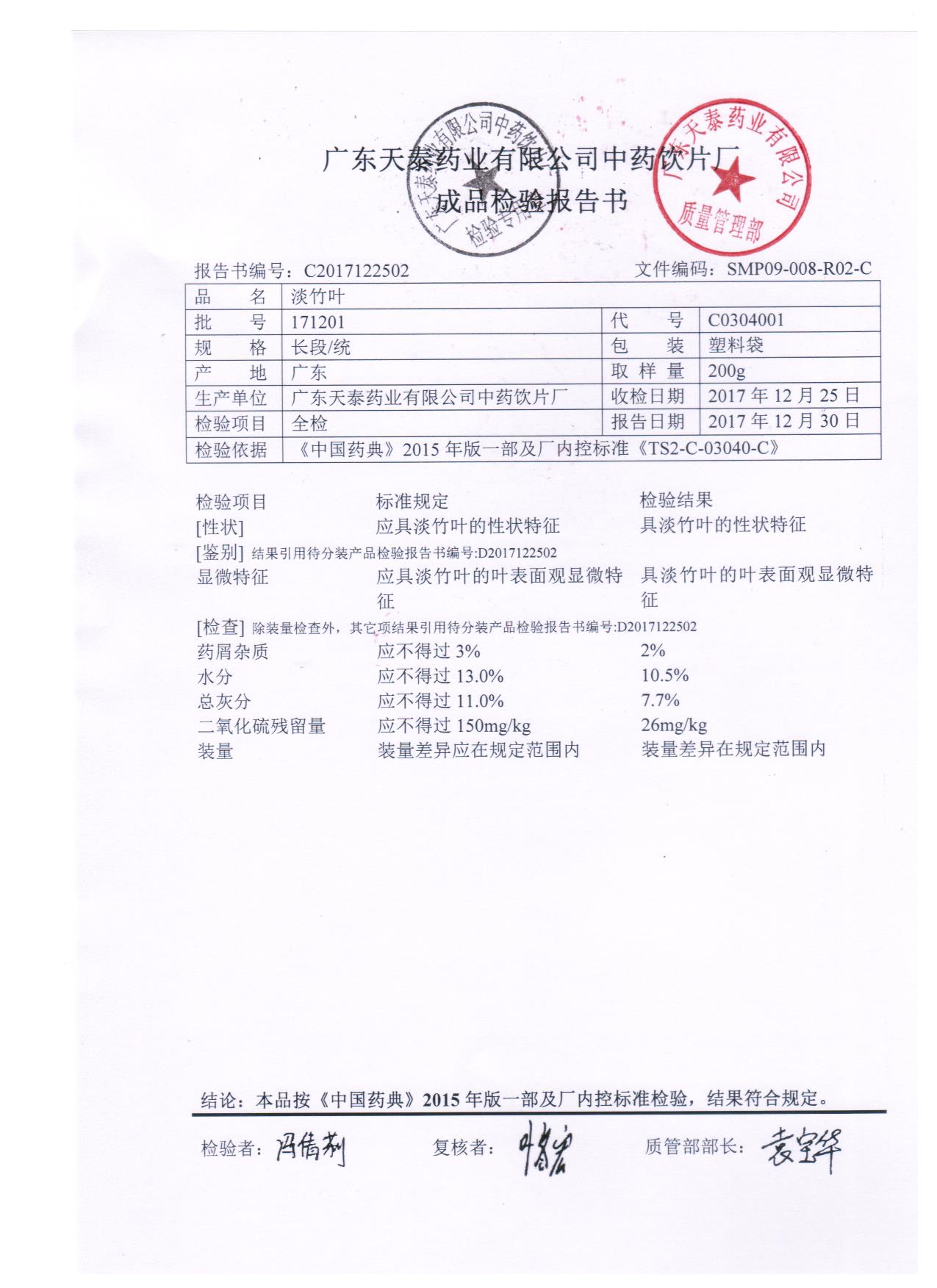 药检报告