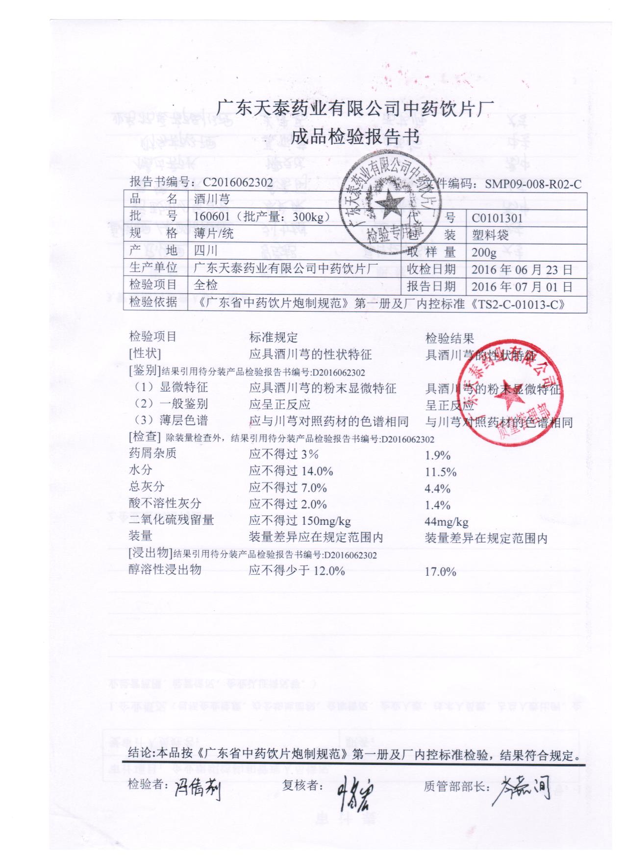 药检报告