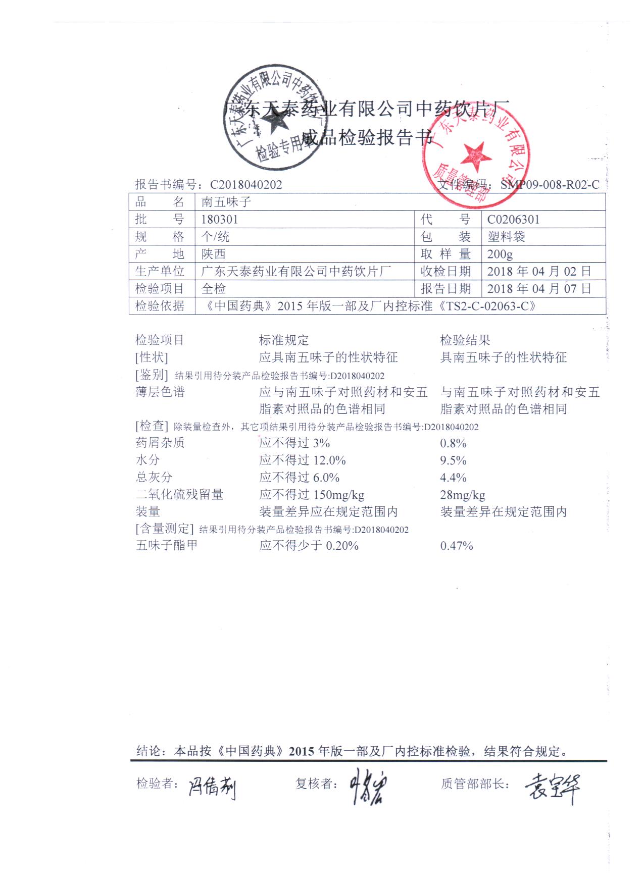 药检报告