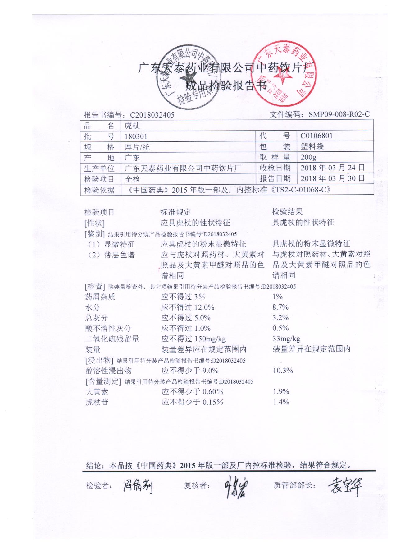 药检报告
