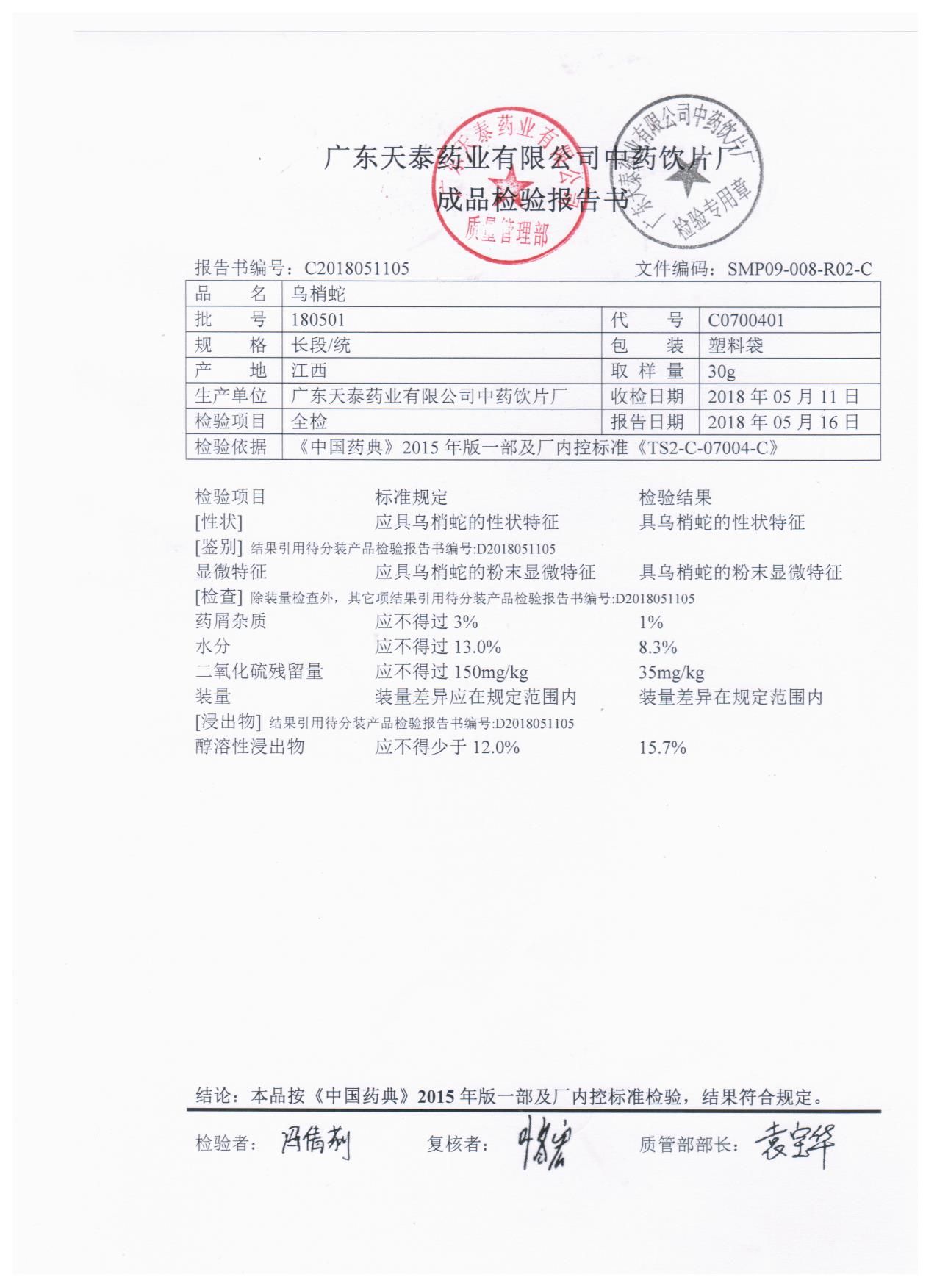 药检报告