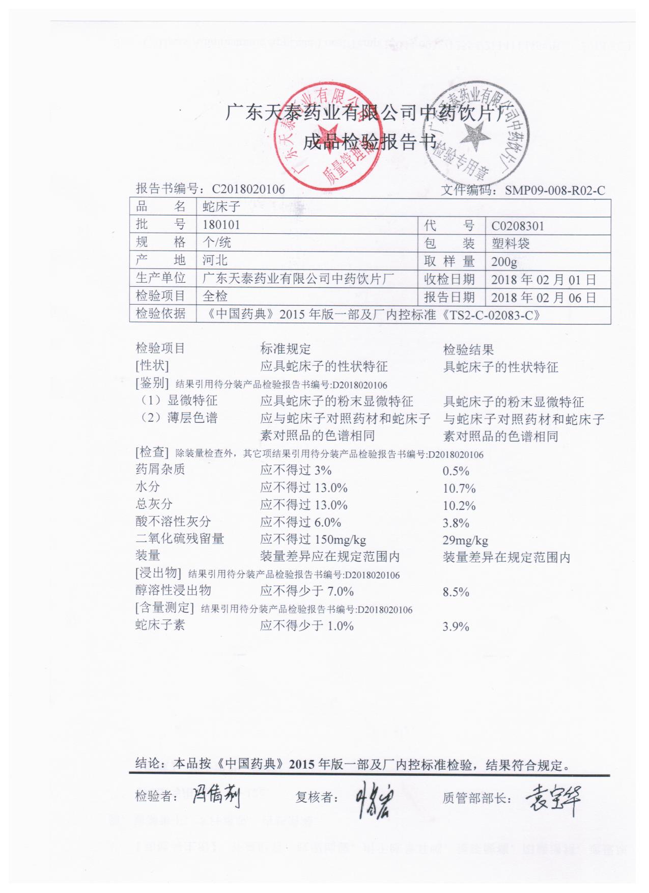 药检报告