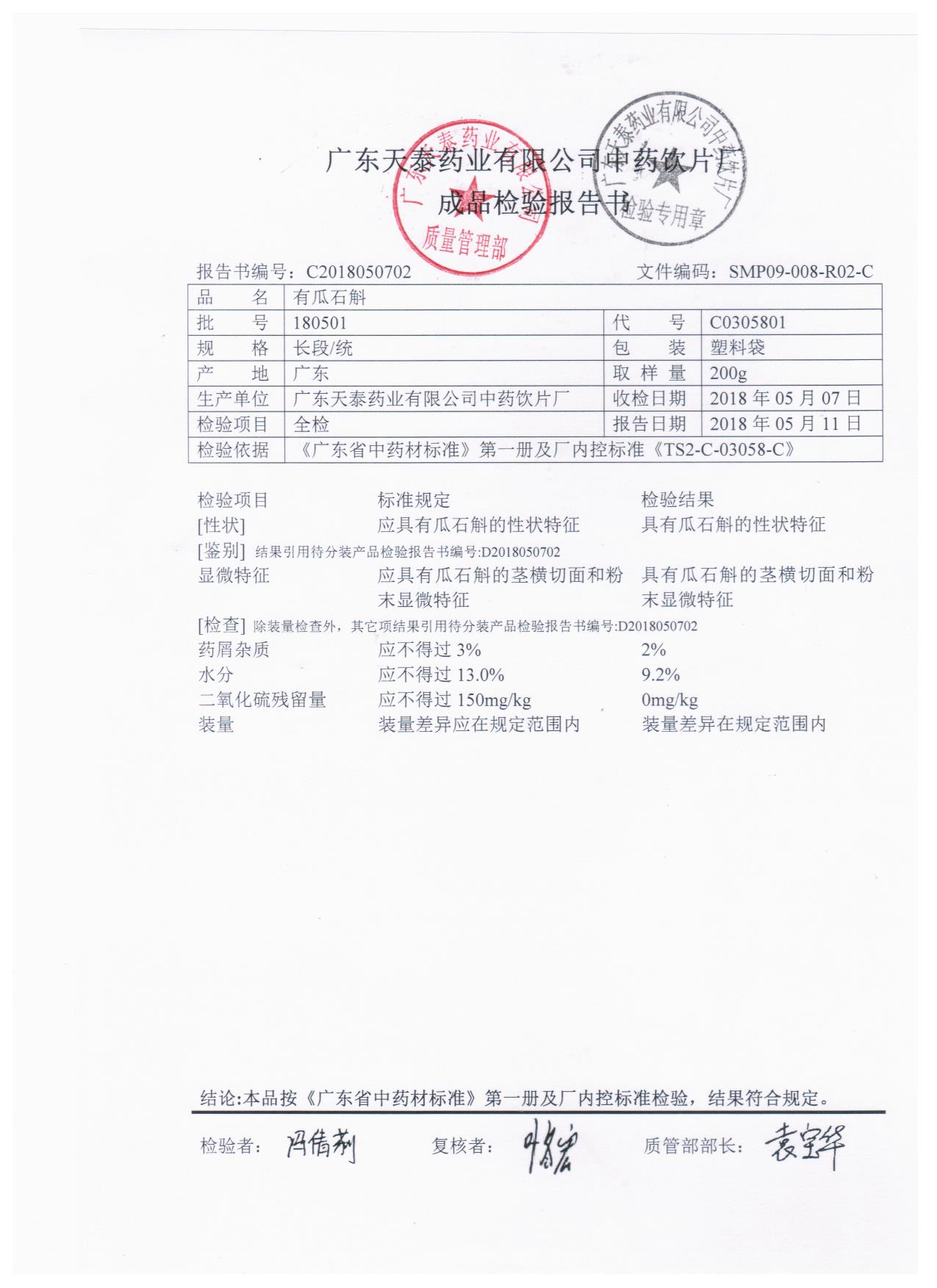 药检报告