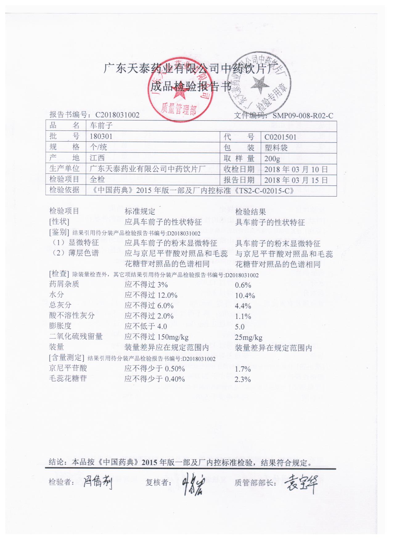 药检报告