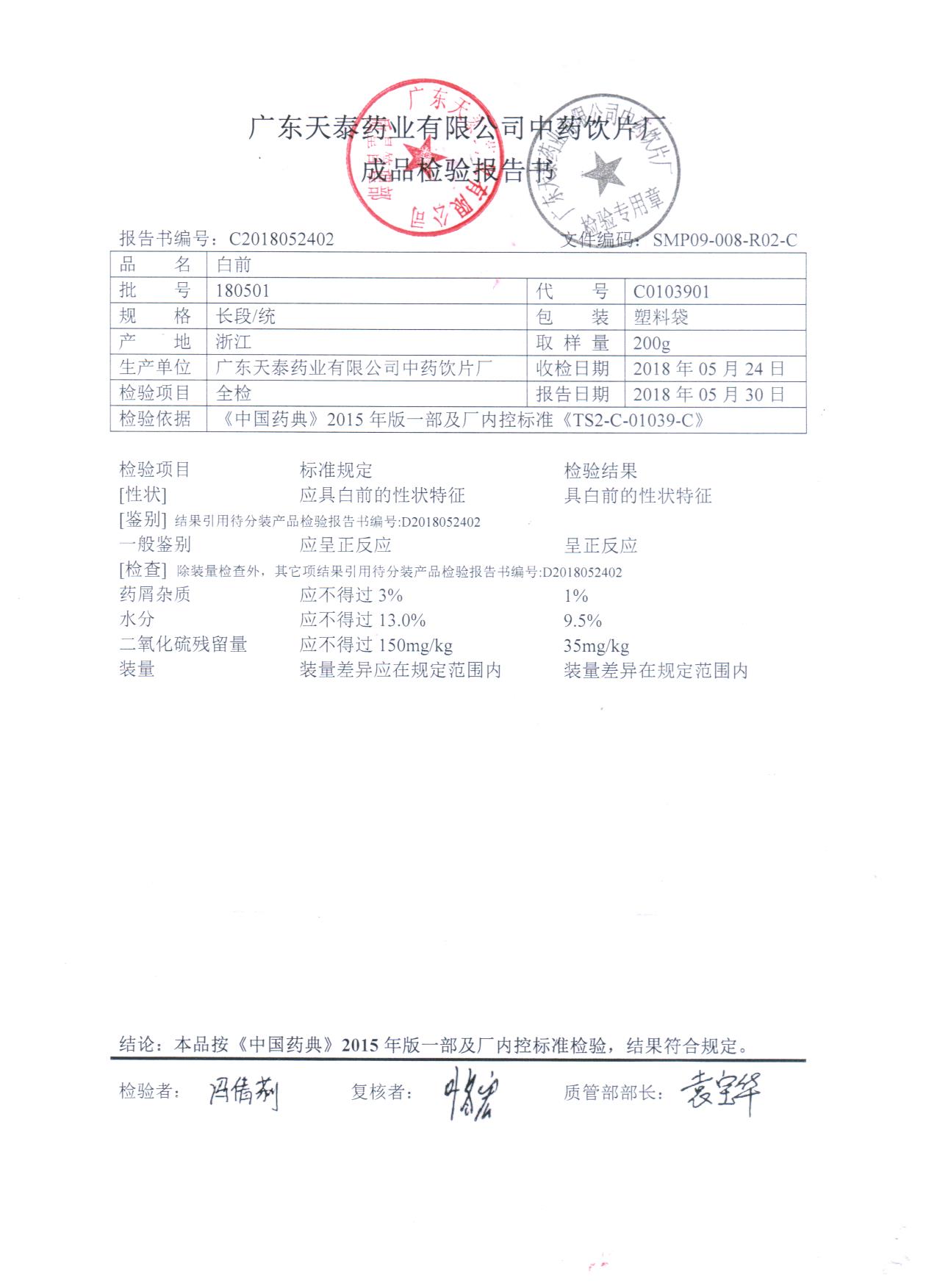 药检报告
