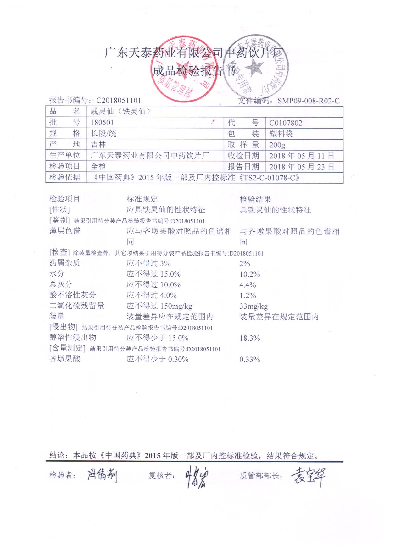 [威灵仙(铁灵仙)]威灵仙(铁灵仙)(长段 /统)