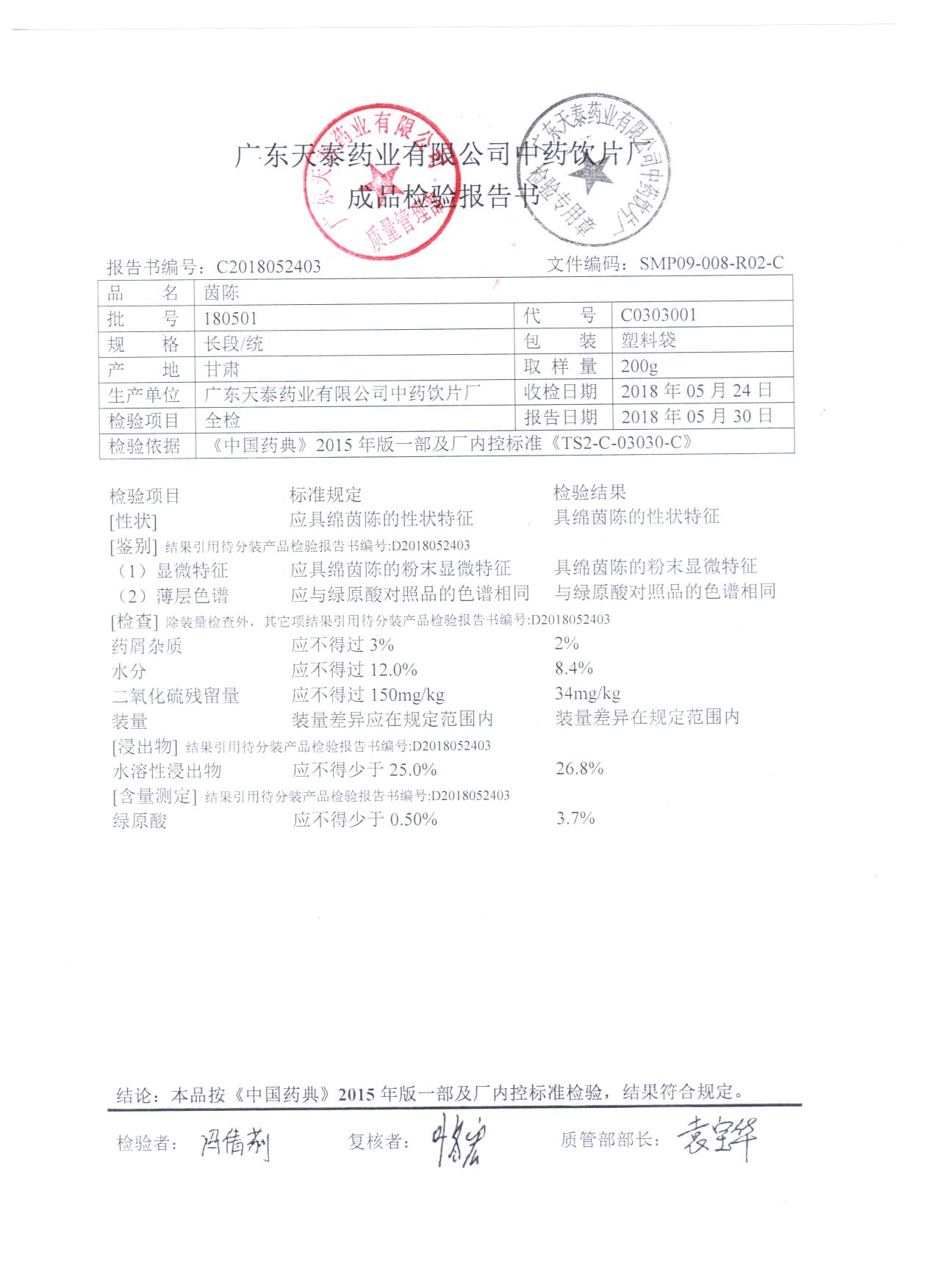药检报告