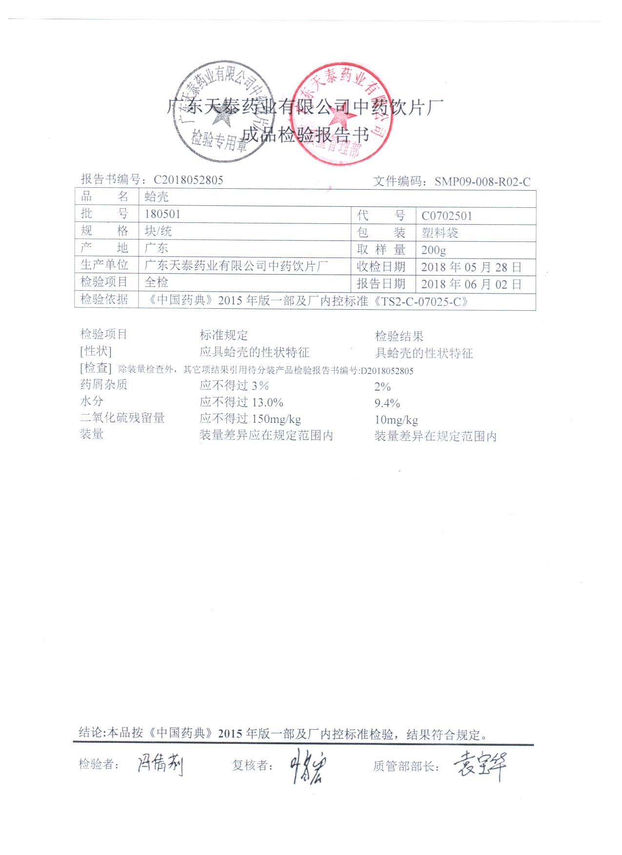 药检报告