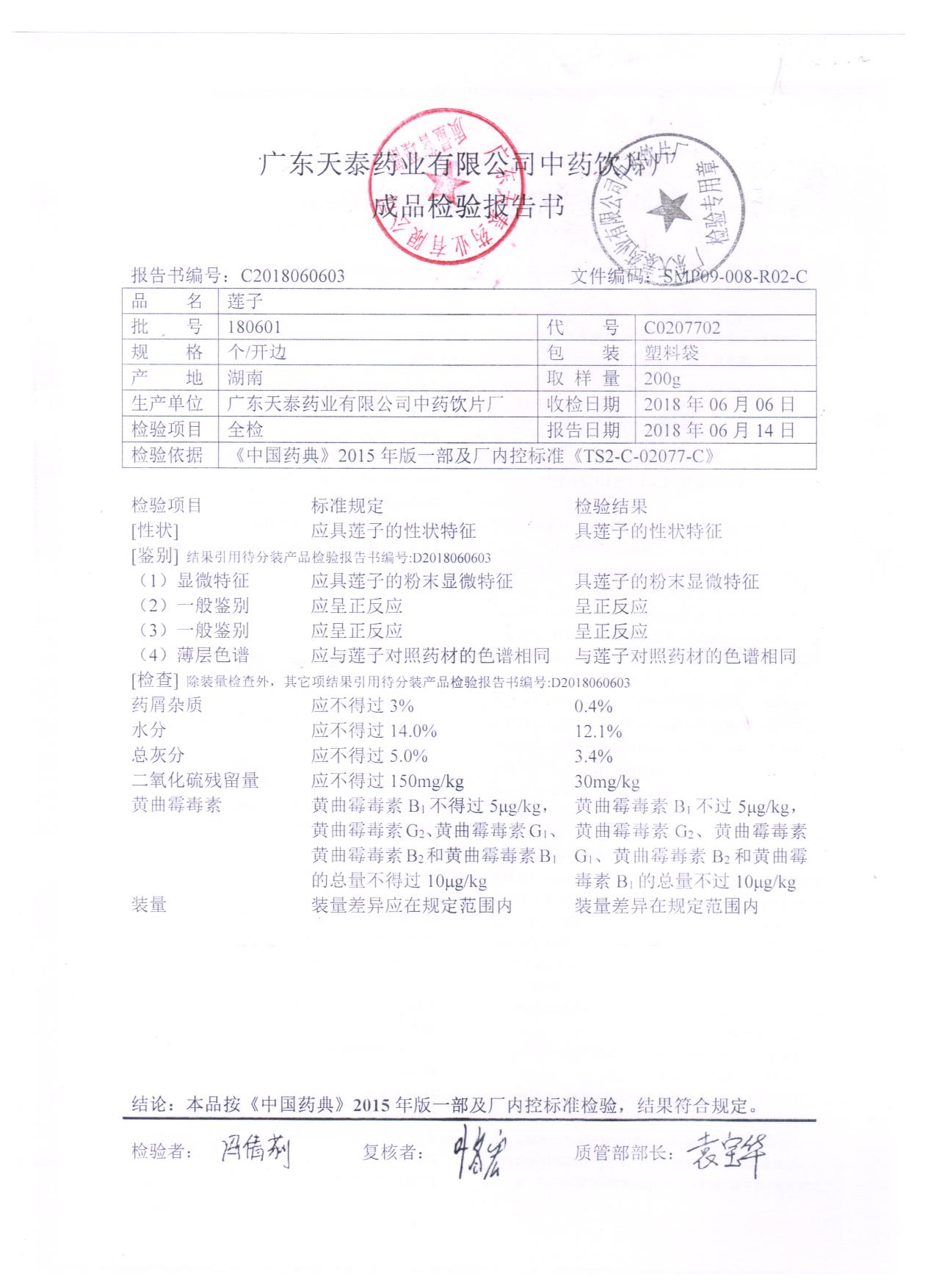 药检报告