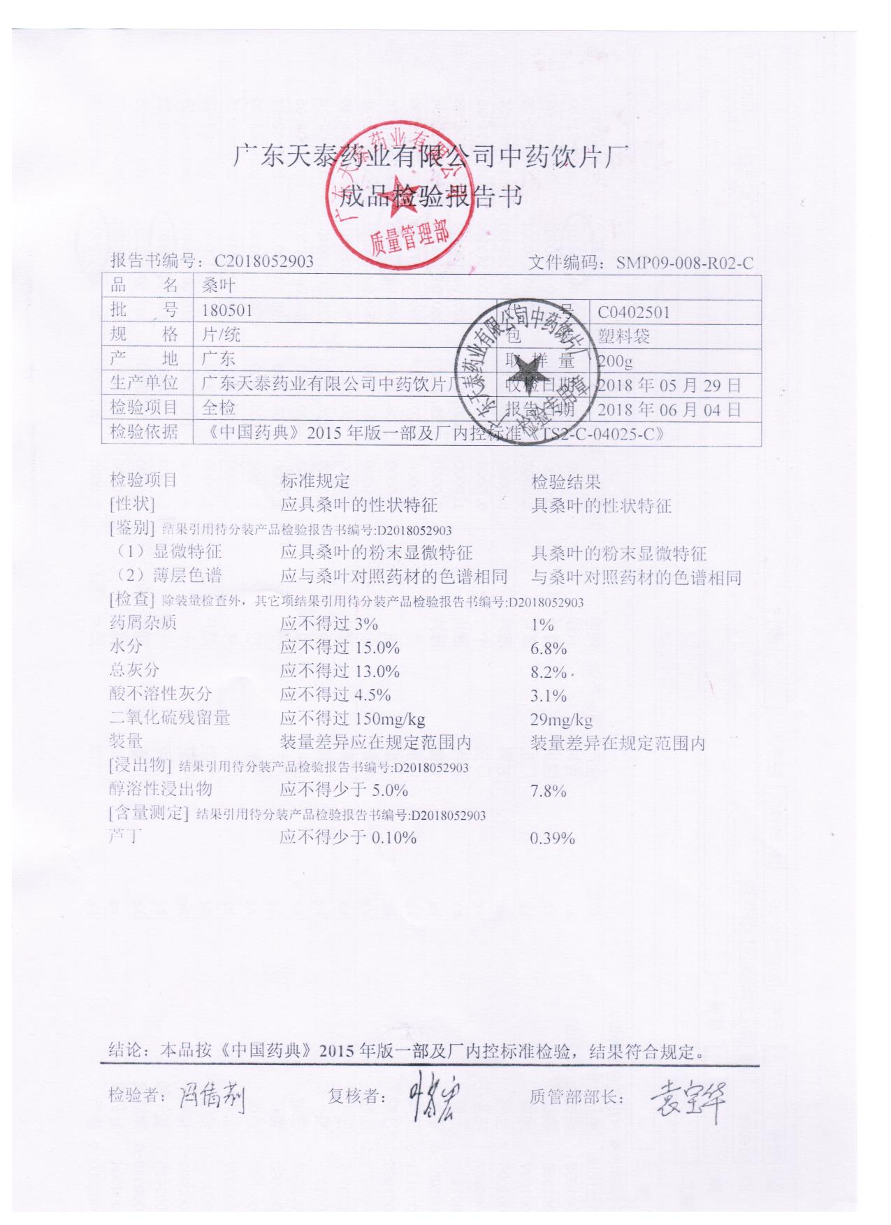药检报告