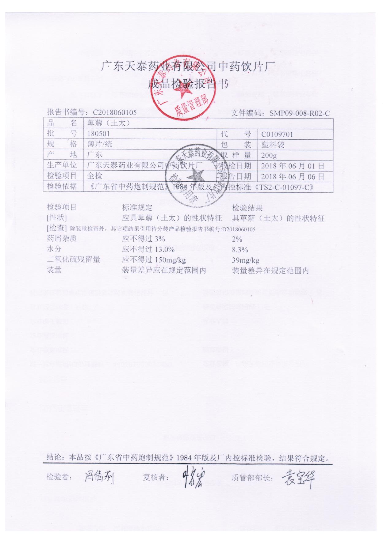 药检报告
