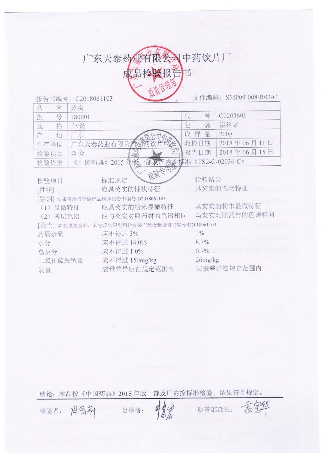 药检报告