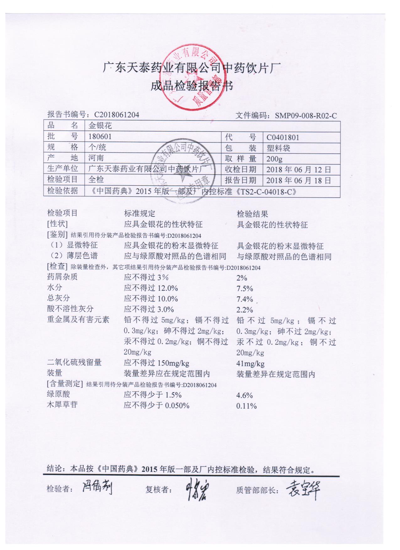 药检报告