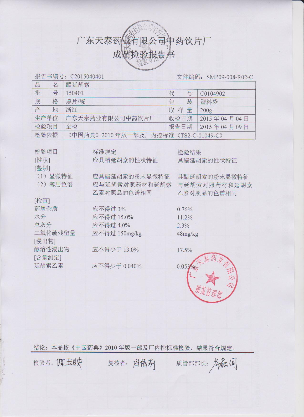 药检报告