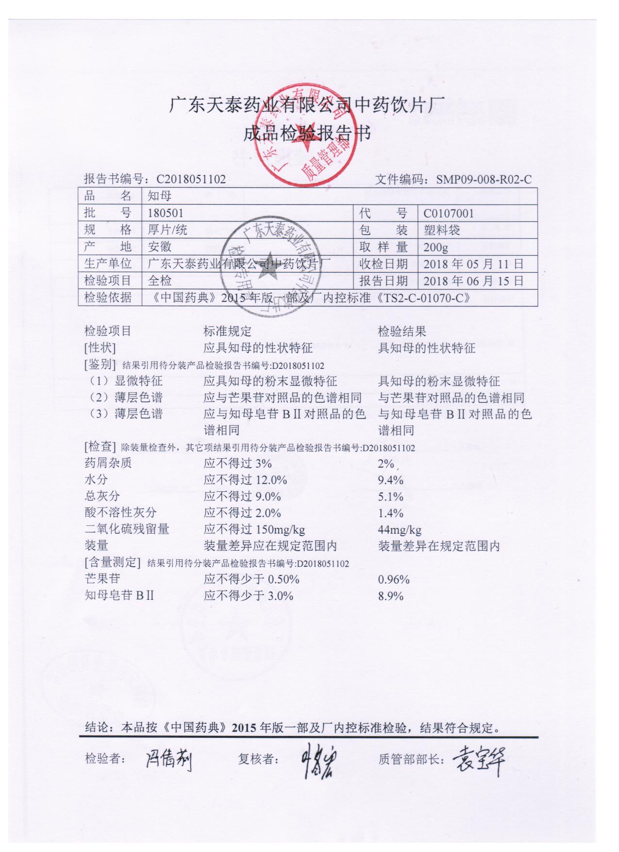 药检报告