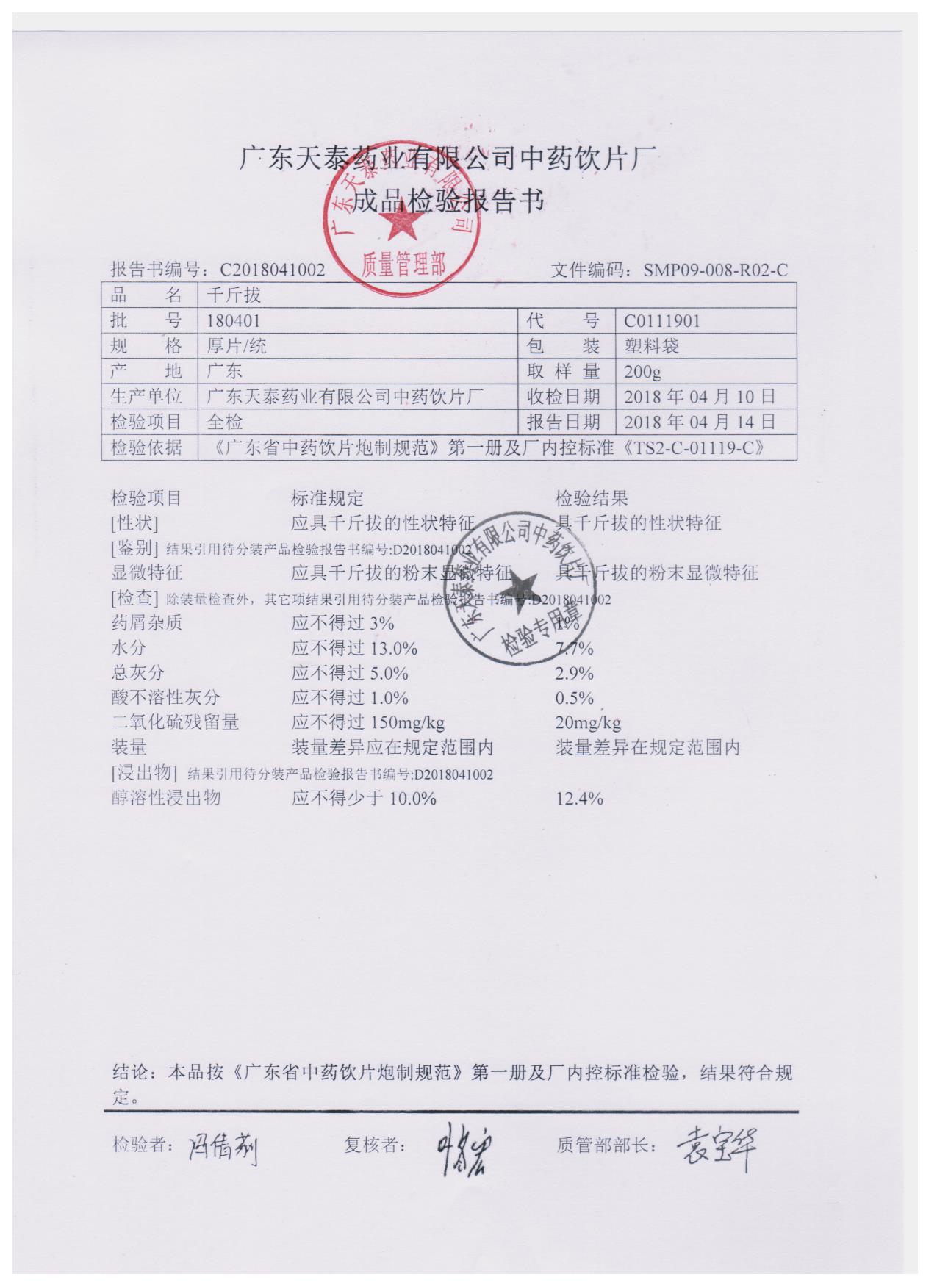 药检报告